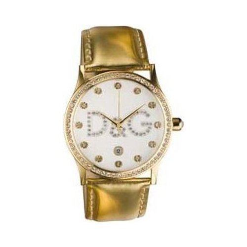 Quartz movement, gold plated case, stone set bezel and gold leather strap. Stone set dial and white dial with date window. Small stone set charm complete with presentation box and instructions. Watch movement is Quartz analogue, a watch movement which is driven by a battery. This makes quartz movements incredibly accurate as the amount of time lost or gained over the course of a day is absolutely minimal. Dial color is white crystal, glass type is mineral and crystal glass. A hardened glass which is treated to be more resistant to scratches. Case material is gold tone, steel case shape is round. Case width (approximately) is 39 millimeters. Case depth (approximately) is 9 millimeter. Strap and bracelet type is leather, strap clasp type is traditional buckle and date. A feature that displays the current date on a watch. This can either be via a date window, which displays a number corresponding to that day's date on the watch dial, or it can be a function on a digital watch. Water resistance is 50 meters, suitable for everyday use and swimming in shallow water but not pool side diving or water sports. Color is gold and gender is ladies. Style is stone set, Case and bezel model reference: DW0390. Packaging: Official Dolce And Gabbana presentation packaging. Manufacturer warranty is 2 year. Manufacturers guarantee brand is Dolce and Gabbana.